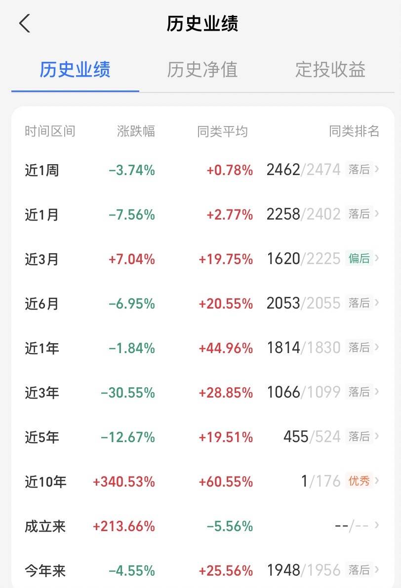 支付宝“基金”板块9月28日数据显示,招商中证白酒指数(LOF)A(161725)近1周的历史业绩在2474只同类产品中排名2462位,近1年在1830只中排名1814位,近3年在1099只中排名1066位,近5年在524只中排名455位。几乎都处于垫底地位。