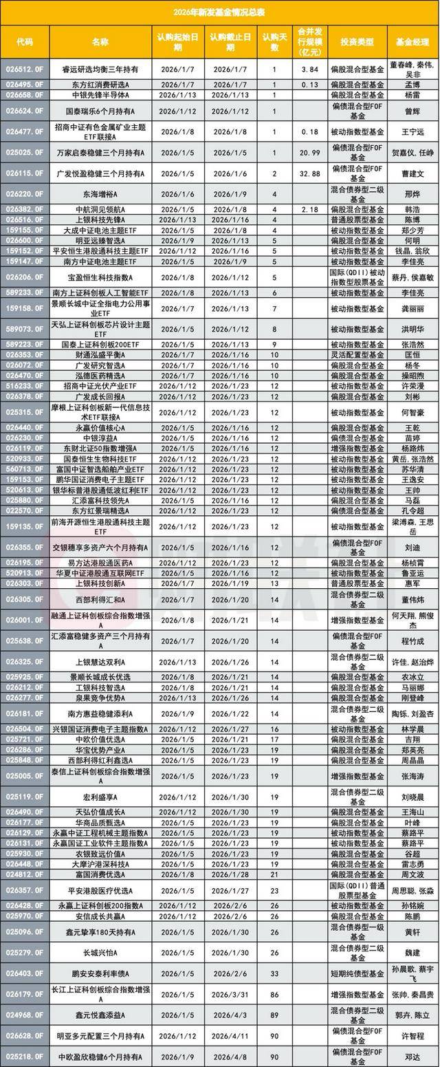 更受关注的变化在于募集节奏。多只产品在发行首日快速宣布结束募集,还有产品上线首日全渠道募集便实现超过10亿元。整体而言,2026年新基金发行一开年便呈现出“产品类型更丰富、募集节奏更紧凑、投资人结构更均衡”的特征,也为后续能否延续升温埋下了一个具有代表性的样本。