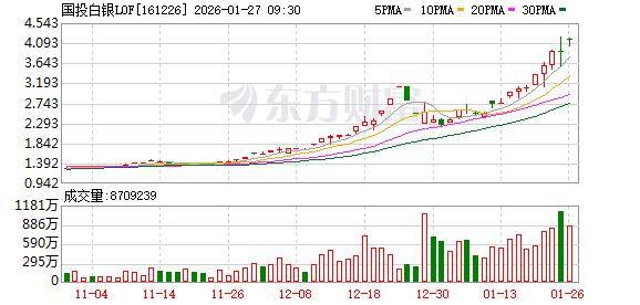 国投白银LOF溢价率也持续高企。截至1月26日收盘,二级市场报4.183元,溢价率超53%。