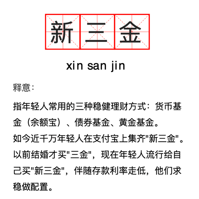 在如今求职求稳、理财更求稳的环境下,“新三金”成为当代年轻人的理财新思路。